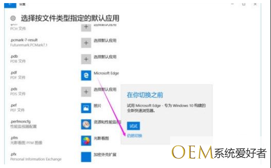 8、点击确定是提示:在你切换之前的温馨提示,点击仍然切换,切换后可以看到.pdf的默认应用改为了PDF Viewer应用程序;