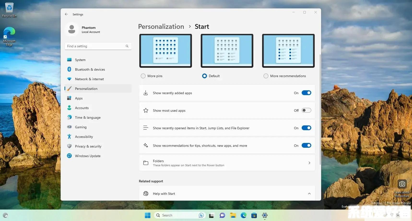 允许关闭Windows 11开始菜单上推荐的新控件
