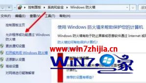 3、进入防火墙设置后点击进入“允许程序或功能通过windows防火墙”;