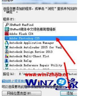 5、打开允许运行另一程序后选择我们需要的程序,点击该程序我们可以看到会转换到程序路径中,然后将该程序选择添加。