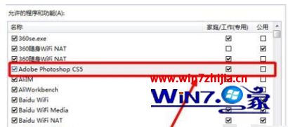 6、添加完成后在最初的允许程序或功能通过防火墙窗口界面中,可以按照个人需要将“家庭/工作(专用)”和“公用”选择勾选,然后点击确定保存设置即可。