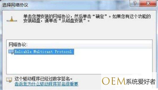 4、最后添加完后,在弹出的网络协议对话框内选择,ReliableMulticast Protocol协议,然后点击确定即可。