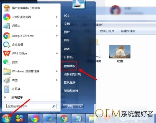 1、首先点击左下角“开始”,然后点击“控制面板”,