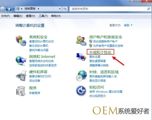 2、接着在“控制面板”中选择“外观和个性化”,