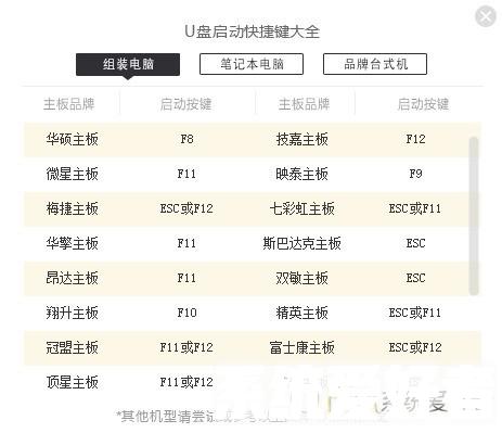 4.确认自己的主板bios启动快捷键,区分组装电脑、笔记本电脑、品牌台式机,胖爪装机大师已经为您准备好了!