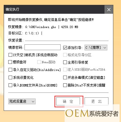 7.在确认执行页面,默认当前选择。直接点击确定(如图十九),再次提醒,记得备份好自己的重要资料;