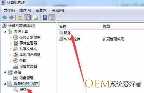 2、点击下方“服务和应用程序”,然后点击下方服务或者在右侧点击“服务”。