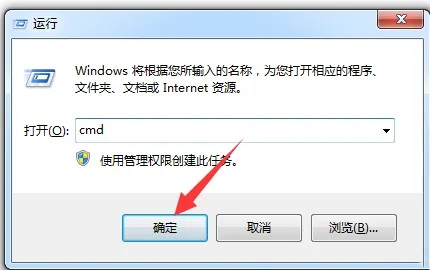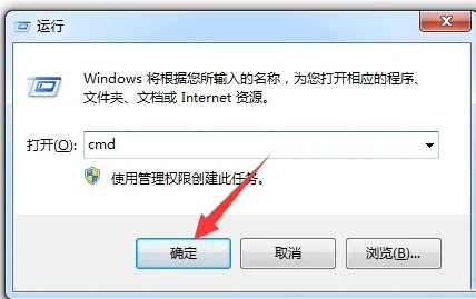 2.在运行框中输入cmd后,点击【确定】。
