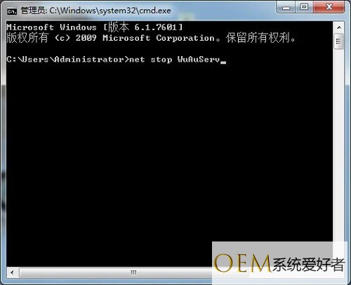 3.在弹出的以下窗口中,输入net stop WuAuServ后按回车键。