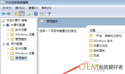 3、弹出如图所示界面,点击用户设置下面的“管理模板”。
