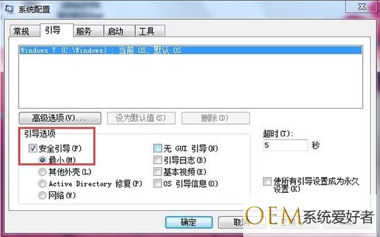 勾选“安全引导”和“最小化”两个项目,点击“确定”按钮。