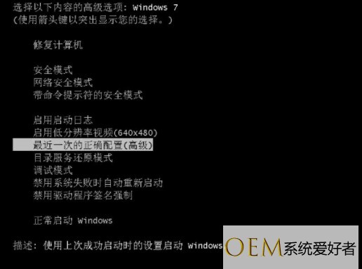 1. 在系统启动时按F8键进入安全模式。它将调出“高级启动选项”,