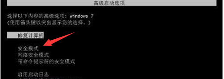 1、电脑开机后立刻按住F8直到出现高级选项,选安全模式进入。
