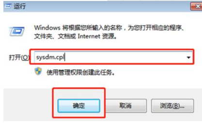 1.按下键盘上的“Win”+“R”键,弹出“运行”窗口,输入“sysdm.cpl”并单击“确定”;