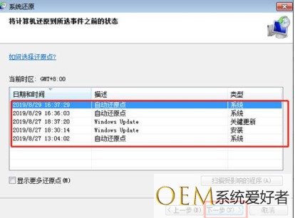 4.在下一个界面中选择一个还原点,系统将还原到该还原点之前的状态。单击“下一步”继续操作;