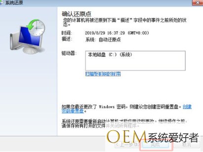 5.最后确认选择的还原点无误,点击“完成”。随后电脑会重启,并进入选择的还原点状态。