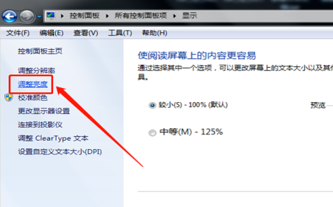 3.在显示页面右侧,选择“调整屏幕亮度”选项。