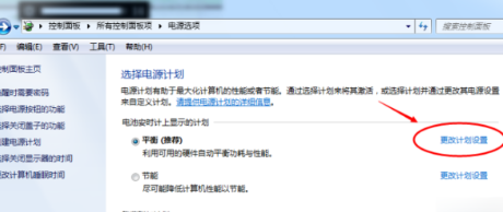 3.进入电源选项页面后,点击当前电源计划右侧的“更改计划设置”选项。