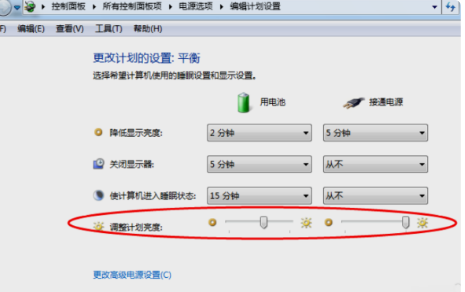 4.在弹出的窗口中,针对“使用电池”和“接通电源”两种情况分别调节亮度大小,并根据个人需求进行选择。