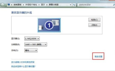 2.在分辨率设置窗口中,找到“高级设置”选项。