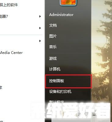 1.点击左下角的开始按钮,打开菜单,选择控制面板功能打开。