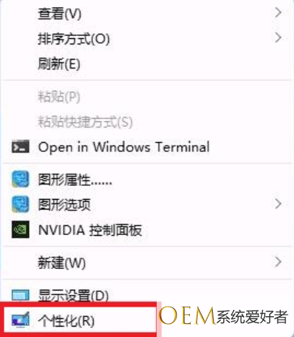1、首先右击桌面任意空白处,点击个性化选项。