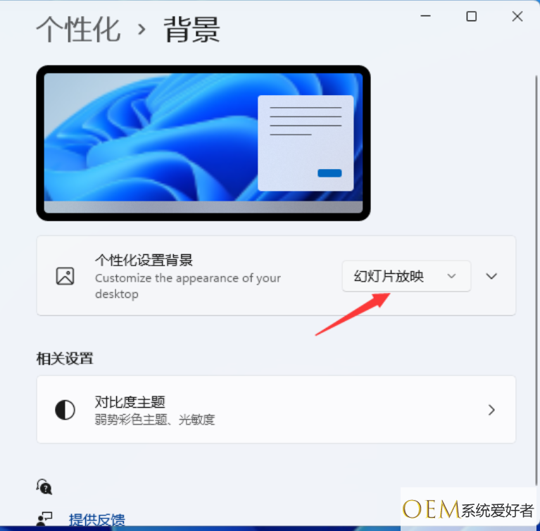 3、将背景的下拉菜单选项设置为幻灯片放映。
