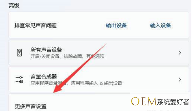 3、接着向下滑动,点击“高级”下的“更多声音设置”。