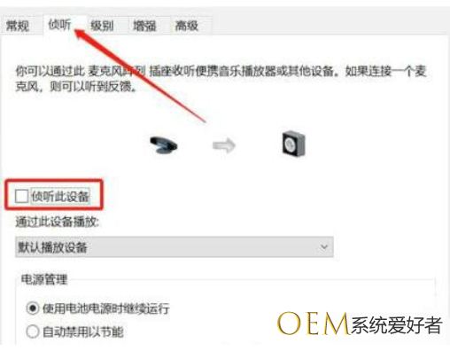 5、最后在“侦听”选项下,取消勾选“侦听此设备”,再点击保存即可解决。