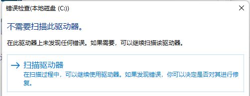 4、错误检查(本地磁盘 (c:))窗口,不需要扫描此驱动器。在此驱动器上未发现任何错误。如果需要,可以继续扫描该驱动器。点击扫描驱动器(在扫描过程中,可以继续使用驱动器。如果发现错误,你可以决定是否对其进行修复);