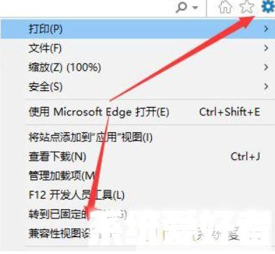 打开ie浏览器之后,页面右上角找到齿轮状按钮,点击它打开设置,然后在设置下拉菜单中点击“兼容性视图设置”。