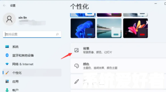 2、在个性化设置界面的左侧栏中找到“背景”。