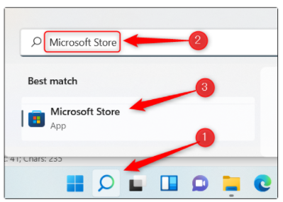 1、从win11的Microsoft Store应用商店下载这款软件。单击win11桌面底部的搜索图标,输入“Microsoft Store”打开。