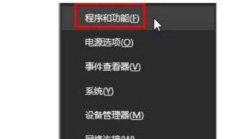 1、首先进入系统并按下快捷键“win+x”然后点击“程序和功能”;