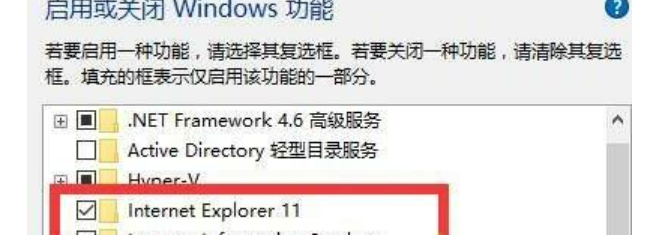 3、在这里窗口中保证自己的“internet explorer”选项被勾选即可;