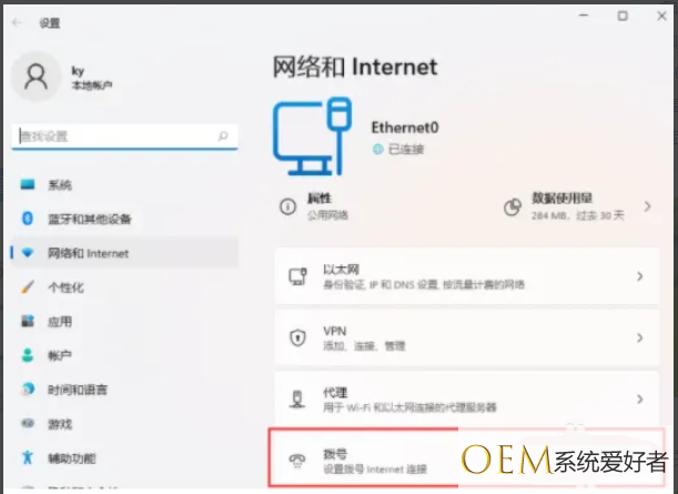 1、打开任务栏右下角的网络图标,选择网络和 Internet 设置,然后点击拨号。