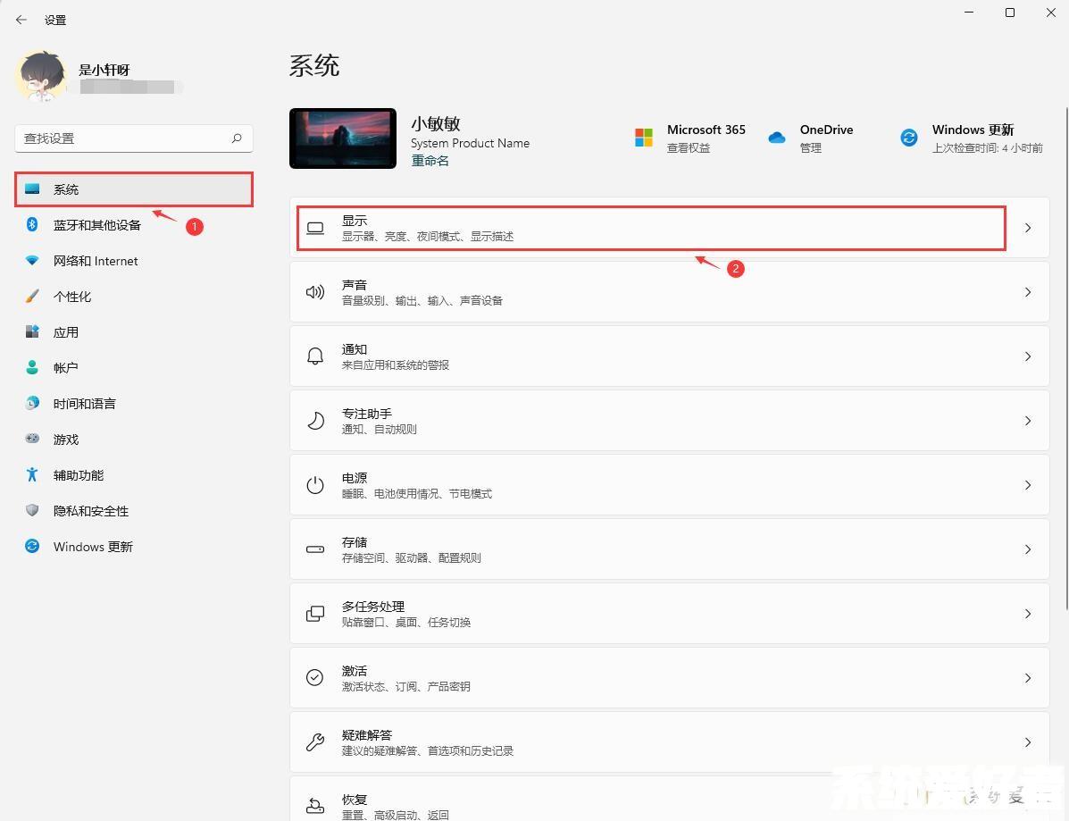 2、转到系统,然后单击显示。
