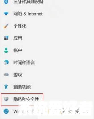 进入设置界面,点击左侧隐私和安全性进入。