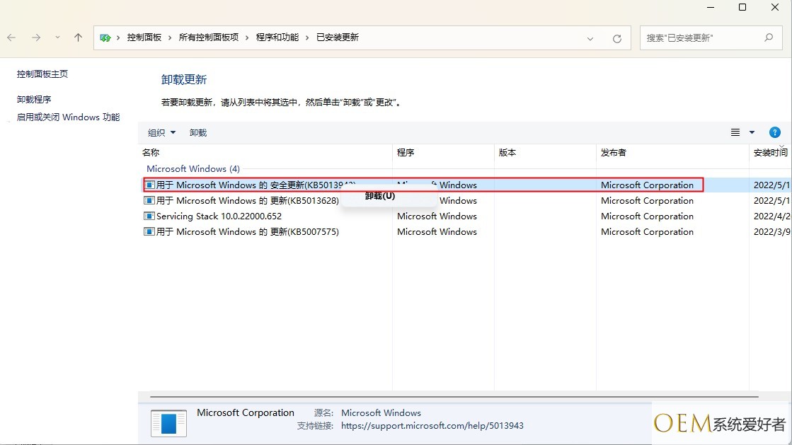 怎么卸载Win11 2022年5月更新?怎么卸载Win11 KB5013943补丁?