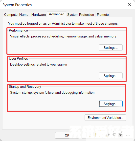 在这里,您将获得性能设置、用户配置文件设置以及启动和恢复设置。