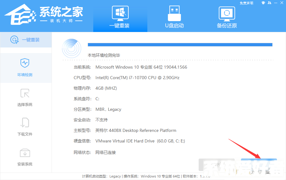 2、进入工具后,工具会自动检测当前电脑系统的相关信息,点击下一步。