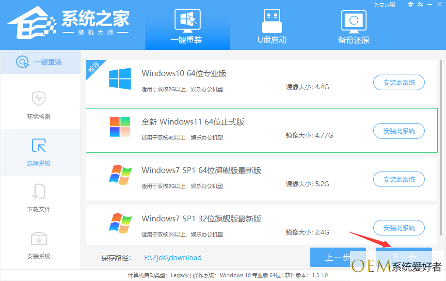 3、进入界面后,用户可根据提示选择安装Windows11 64位系统。注意:灰色按钮代表当前硬件或分区格式不支持安装此系统。