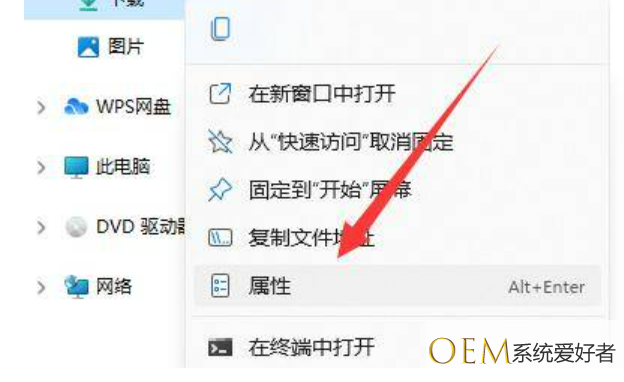 6、修改好之后,打开文件资源管理器,右键下载文件夹选择“属性”。
