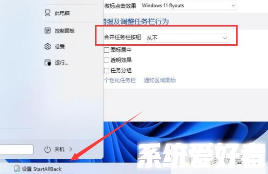 1、win11怎么修改任务栏合并,下载安装startallback这款软件,左侧的“任务栏项”。