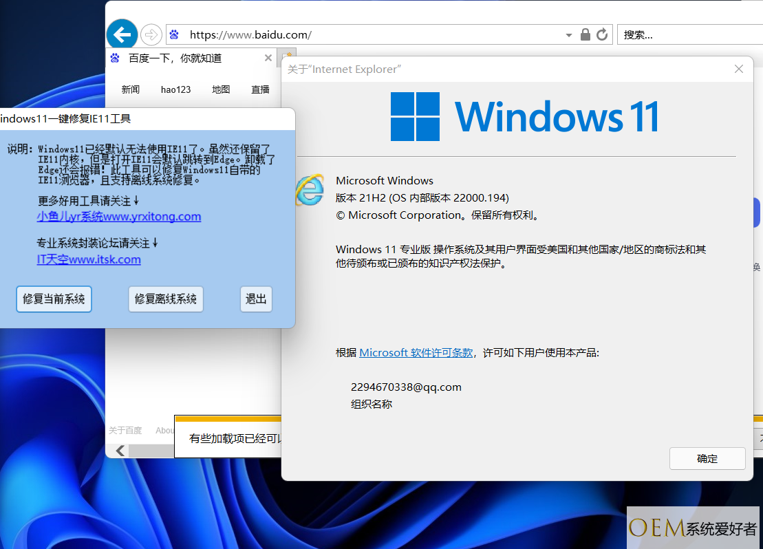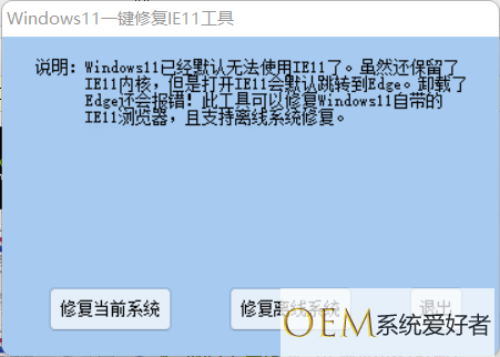 下载Win11 IE浏览器一键修复工具,下载解压后运行exe程序。