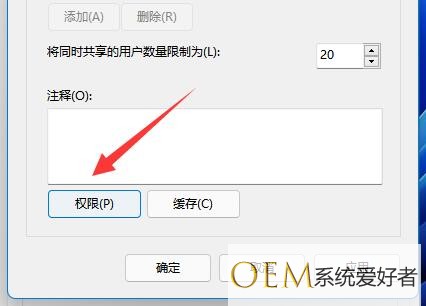 5、开启后,点开下面“权限”按钮。