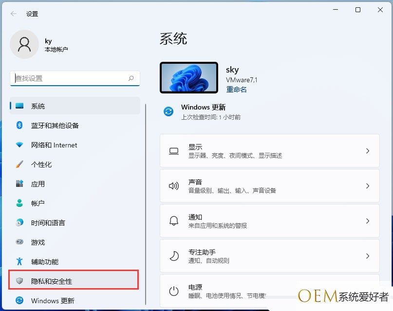 3、windows 设置窗口,左侧边栏,点击隐私和安全性;