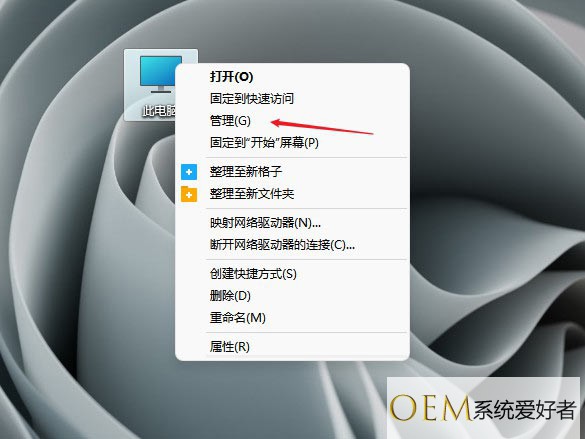 单击此电脑选择管理