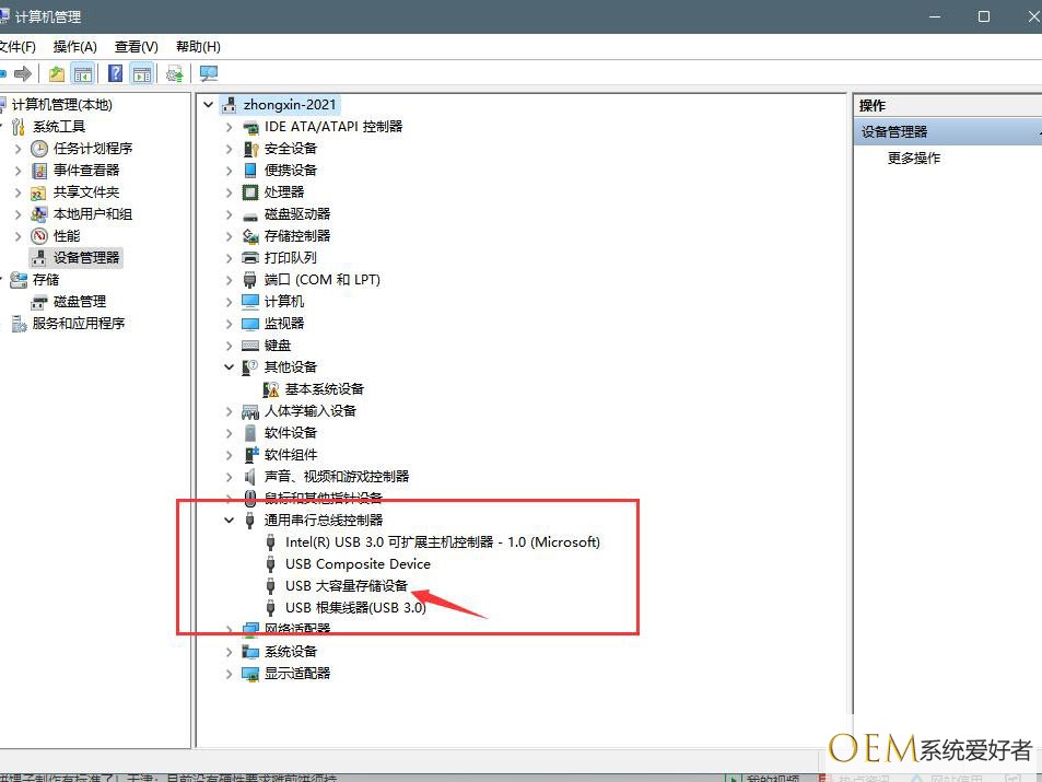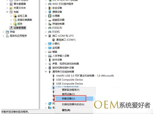 找到找到USB大容量存储设备,右键点击选择卸载。