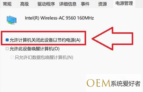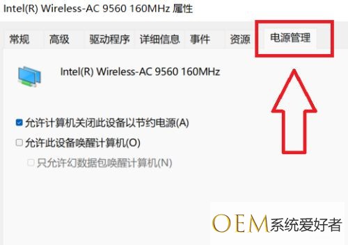 在选项属性栏窗口中,点击电源管理选项。